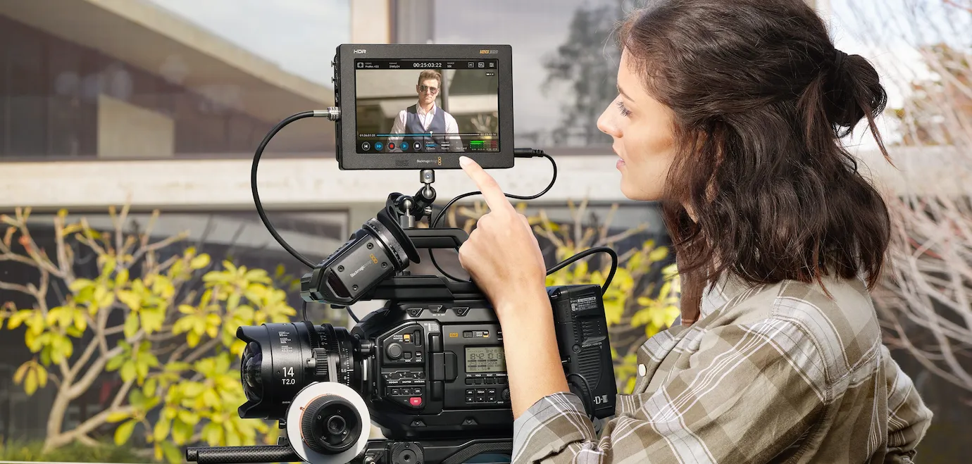 - Kristallklar HDR-kontroll: Använd den extra ljusa pekskärmen med Wide Color Gamut för att övervaka exakta inspelningar i HDR-kvalitet även i direkt solljus – en avgörande fördel för utomhusinspelningar.