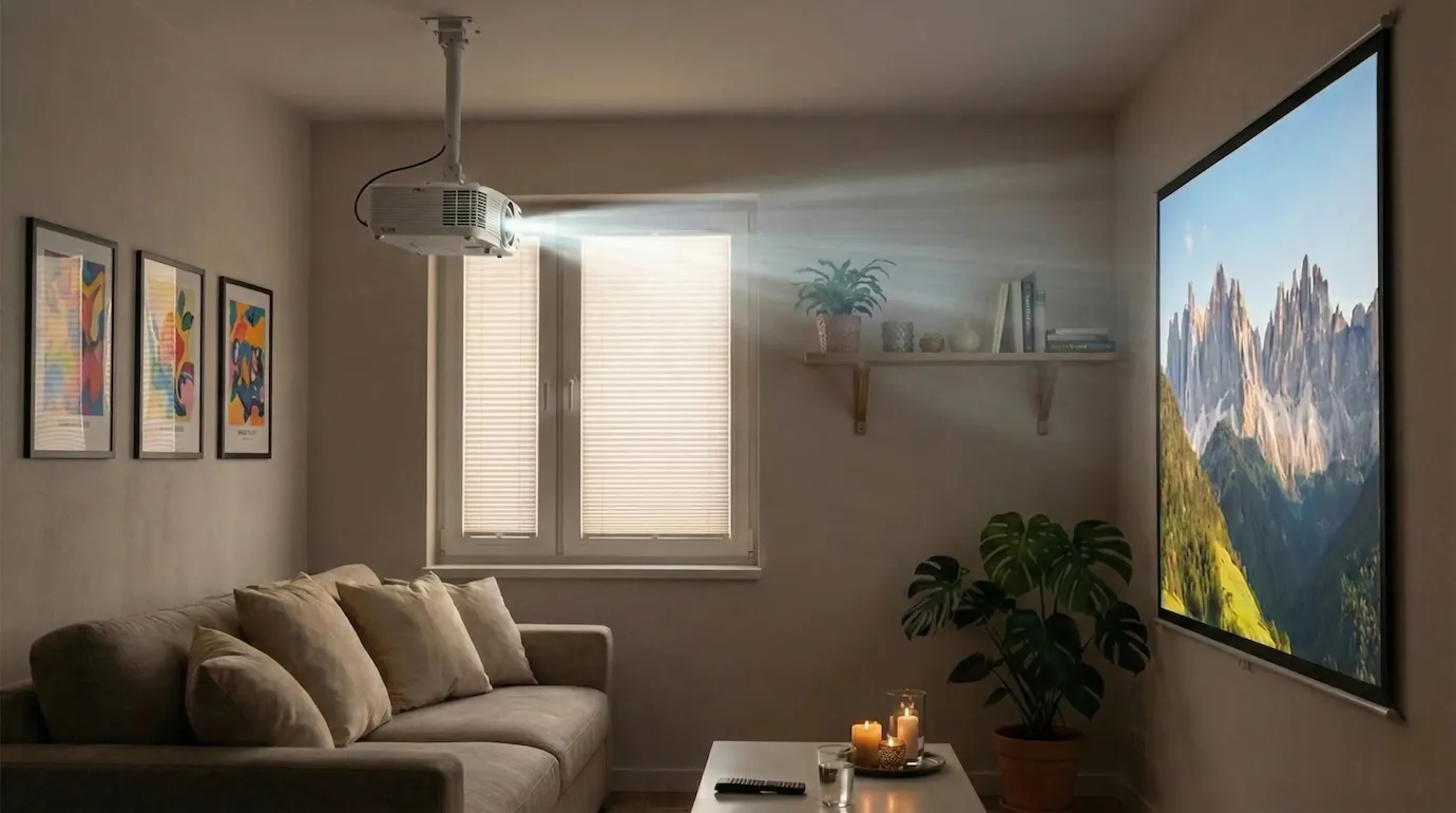 - Minimal avstånd: Uppnå en imponerande bilddiagonal på 100 tum från bara drygt en meters avstånd – perfekt för små rum
