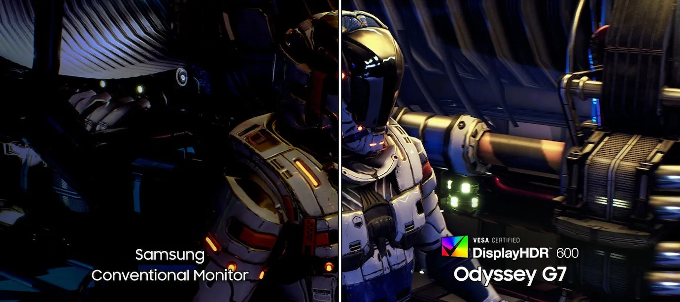 - Detaljrikedom med VESA DisplayHDR 600: Upptäck dolda motståndare tack vare starka kontraster och tydlig återgivning i djupa skuggor.