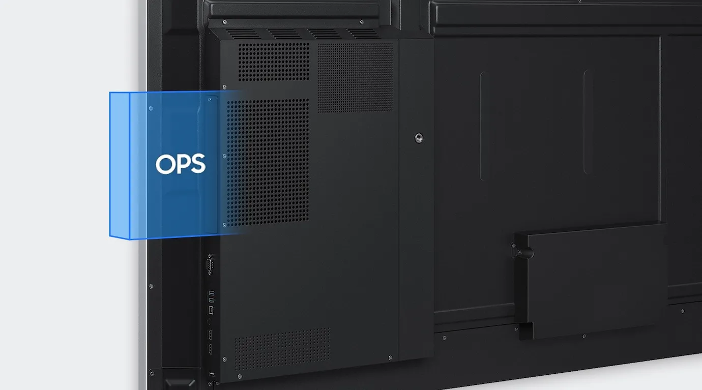 - Oberoende och flexibel: Tack vare OPS-kortplatsen kan displayen integreras i en fullfjädrad Windows-PC-miljö utan att externa enheter behöver anslutas.